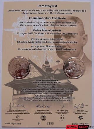 10 eur Slovensko 2019 - Michal Bosák - Pamätný list