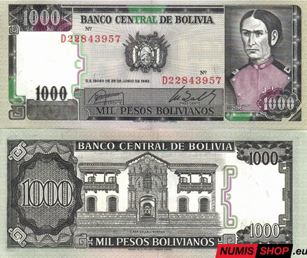 Bolívia - 1000 pesos bolivianos - 1982 (P167a-3) - UNC