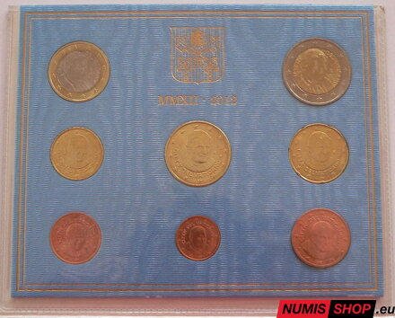 Oficiálna sada Vatikán 2012. Obsahuje osem obehových mincí v UNC kvalite a nominálnej hodnote 3,88 eur s motívom Jeho Svätosť Benedikta XVI. a nápis „CITTÀ DEL VATICANO“. Napravo od portrétu pápeža je vyznačený rok a značka mincovne „R“ a naľavo sú iniciály autorky návrhu „DL“.